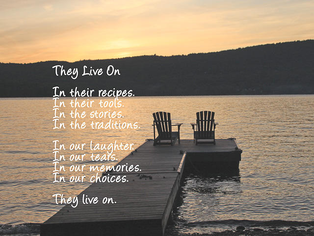 Several vignettes from They Live On: Saying Goodbye to Mom and Dad are illustrated with photographs of nature scenes by photographer, Kathleen Hinkaty. (Click each to enlarge.)